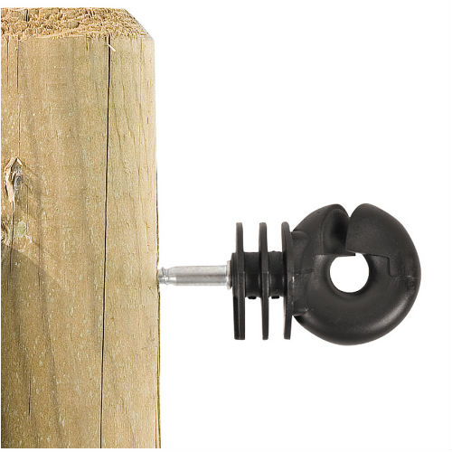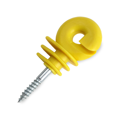 Aislador tornillo ideal para usarlo con alambre, piola, cuerda y cinta electro plástica en cercados eléctricos.