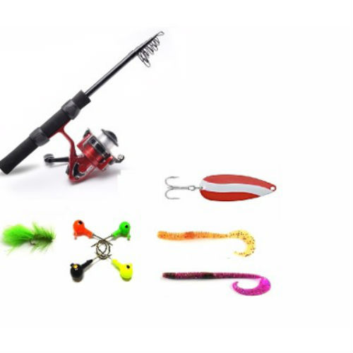 Combo Caña Pesca Carrete Accesorios Excursión Camping 2m
